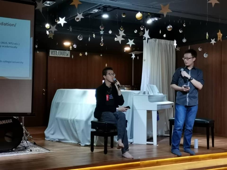 A talk on college application by our two local boys who are currently studying in the UK/US. This is a community service programme in hope to assist those in need, conducted in two bilingual sessions – Friday (20/12) and Saturday (21/12).